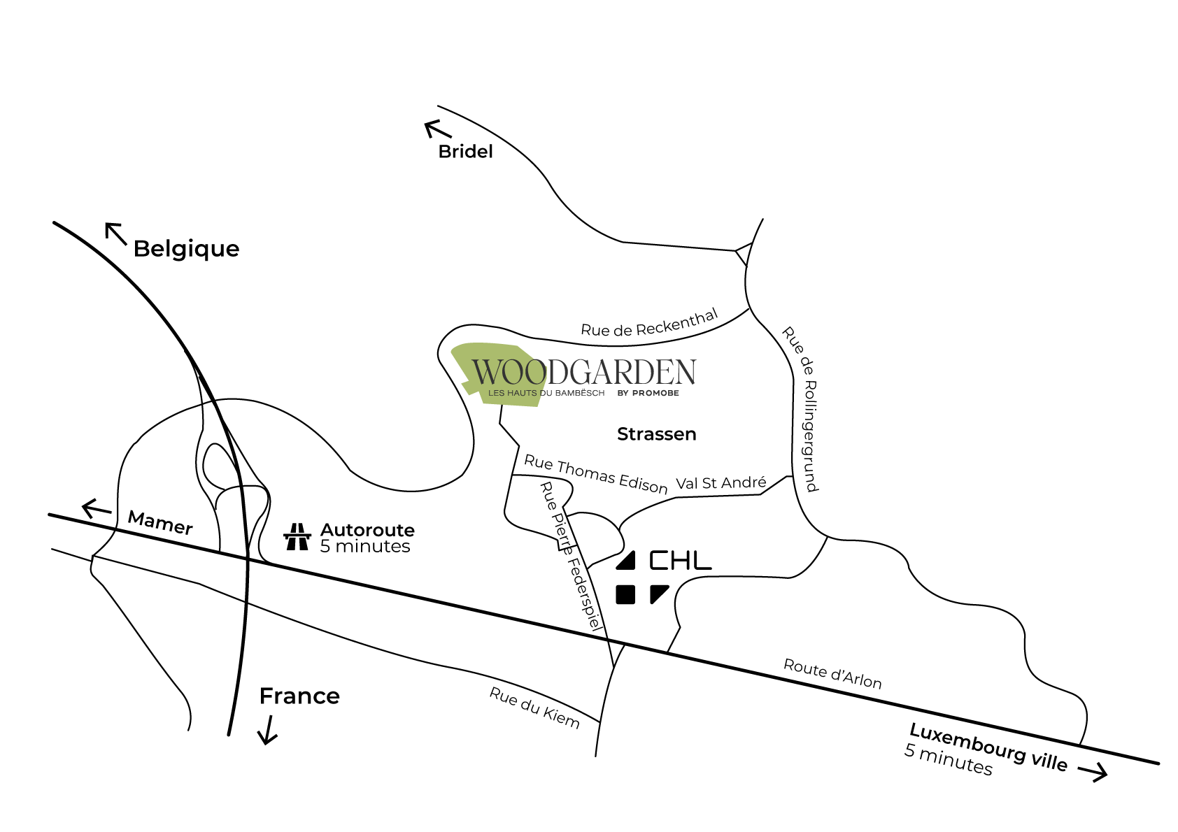 Woodgarden, le nouveau projet de PROMOBE, est situé 5 rue des Primeurs à Strassen, à quelques minutes du centre de Luxembourg-Ville.